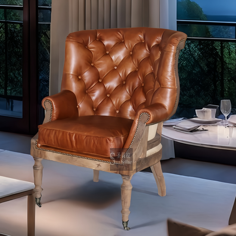 OEM ODM Vintage Tan Leather Farmhouseスタイルレジャーチェア房状バックウィングデザインカスタマイズカラーホームオフィス用ホテル用