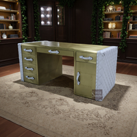 カスタマイズされた産業アビエイターオフィスデスク引き出し付きトップグレインホワイト本革メタルブラスオフィスエグゼクティブテーブル付き