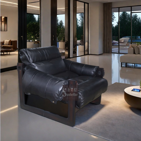 100% 本物の革黒のリビングルームの椅子快適なアクセントの椅子ミッドセンチュリースタイルのリビングルームのソファ椅子木脚付き