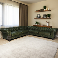 ヨーロピアンヴィンテージチェスターフィールドソファセット100% トップグレイン本革ラグジュアリーL字型チェスターフィールドソファリビングルーム家具