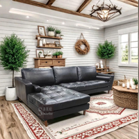 リビングルームソファ本革ソファアメリカンヴィンテージブラックリアルレザーL字型ソファチェーン付きホームホテルヴィラハウス