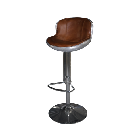 アビエイターバースツールチェアヴィンテージ本革メタルアルミバックリフト調節可能なバースツールハイチェアバーカウンターテーブル用